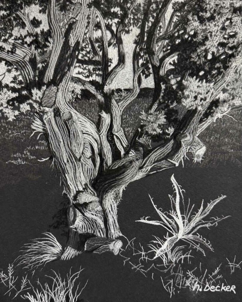 Being creative seemed like an attractive necessity while growing up in northeast Ohio. Pencils, crayons, scissors, and glue were tools for every kind of invention and precursors for not only collaging endeavors, but also charcoal drawing. After graduating from a liberal arts college, Helen moved west to experience mountain living. She also discovered the red rocks of Moab, Utah, where she lived for 14 years. While there, she was a founding board member of Gallery Moab and acted as their treasurer. She also, helped organize and conduct Plein Air Moab, an event for artists creating outdoors. Helen's art practice involves creating, attending workshops, receiving mentoring, teaching, reading and journaling. She is a signature member of the National Collage Society and the International Society of Experimental Artists. She has received numerous awards from both organizations. Currently, Helen and her husband, Jim, live in Lamy, New Mexico, with their tabby cat, Lockey. While all three travel in their camper van to locations in the U.S. and Canada, Helen sketches with charcoal and pencil and develops new ideas for collages, never leaving her art practice at home.