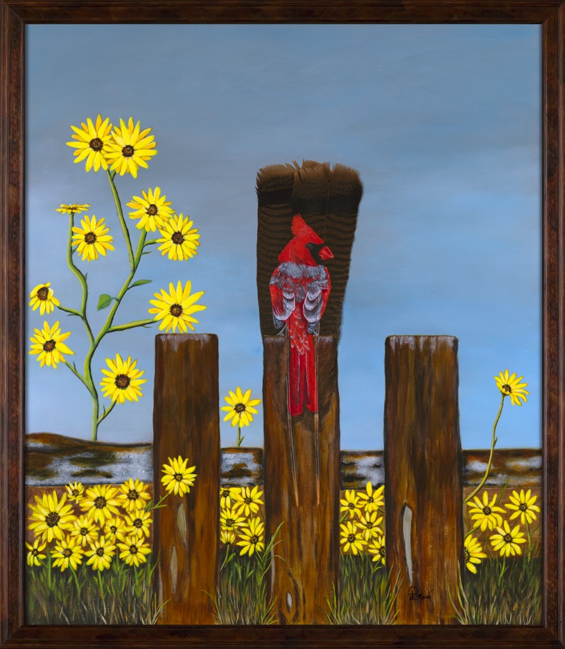 Collectable fine art of acrylics painted on real bird feathers