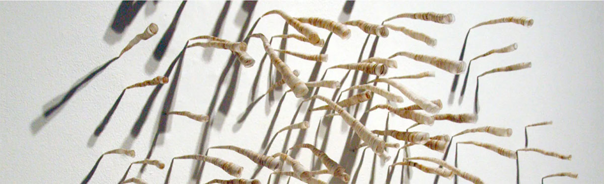 Featured artists in Paper Routes, the 6th Women To Watch exhibition, responded to the many uses and cultural associations of paper—from protest signs to packaging, lottery tickets, and wallpaper—approaching the medium in varied ways. Some highlighted the delicate properties of paper through meticulous cuts, resulting in elaborate forms, patterns, and designs. Others compacted and consolidated the material, forming surprisingly dense and monumental sculptures. Artists relied on traditional as well as innovative techniques. Women To Watch 2020: Paper Routes highlighted and celebrated this diversity of approaches and the transformation of this ubiquitous and eclectic material into complex works of art.